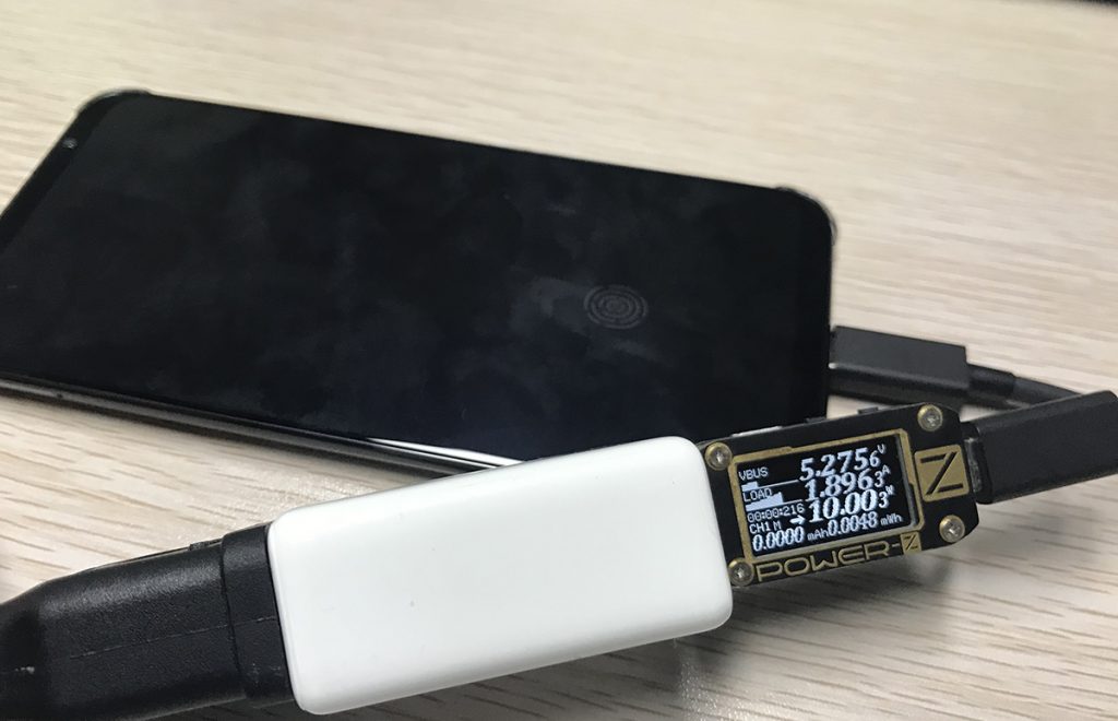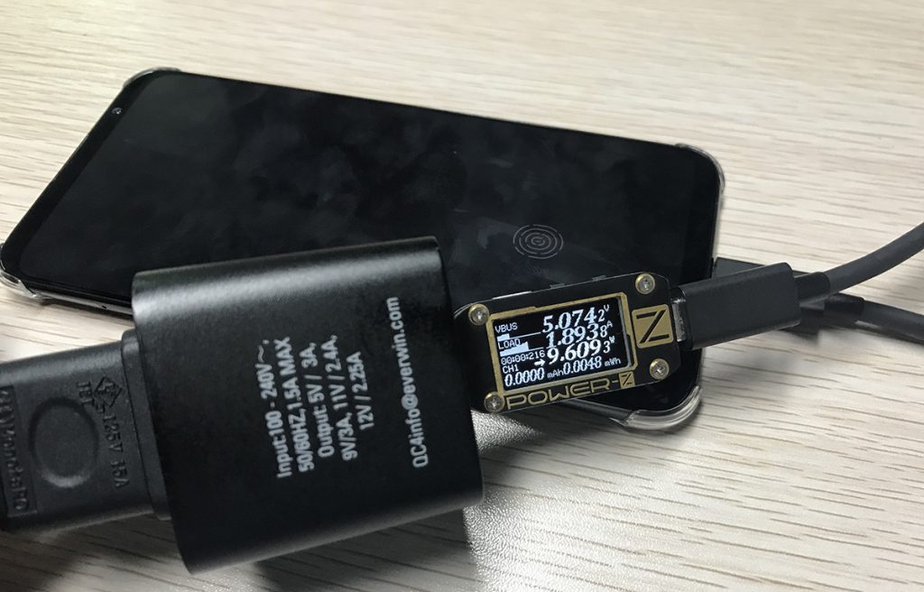 使用高通认证QC4+充电器, ChargerLAB POWER-Z KM001C显示手机的充电功率约为9.6W,充电器为5V输出,同样没有进入高压快充模式。