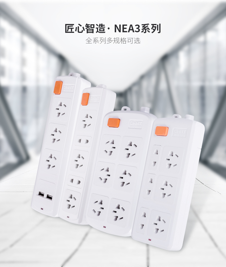 正泰插座NEA3系列,采用了拜耳原生PC料, 耐温阻燃,安全不起;优良的外壳合成技术,非破坏性使用状态下防暴抗摔,不变色,不发黄。线材采用国家标准,国标线缆3*0.75平方米,升温更低,电器更安全。