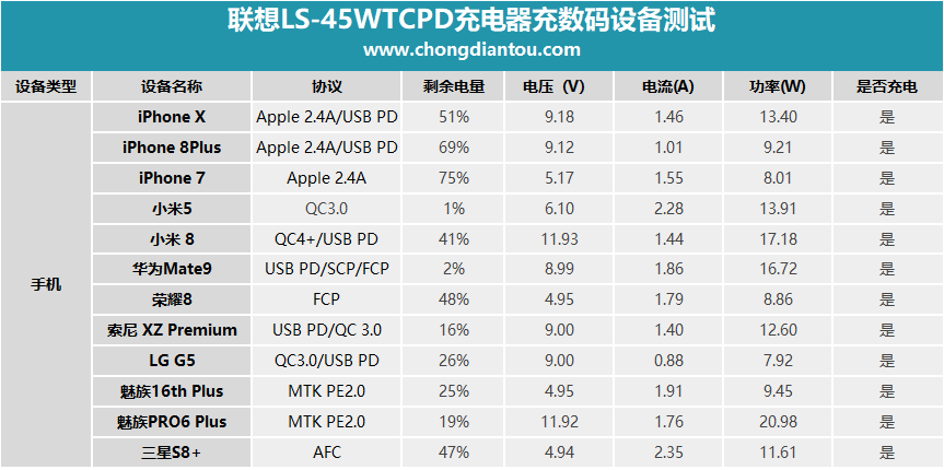 购买建议:联想LS-45WTCPD充电器兼容性好,可给市面上绝大数数码设备充电;并且支持USB PD、QC2.0/3.0快充,最大功率45W,充电速度快;USB PD档位涵盖全面,手机、平板、游戏机、笔记本都能充。如果你需要一个能给USB PD笔记本充电的充电器,这款很适合,但如果你只要一个充手机的USB PD充电器,那可以再看看其他更小功率的充电器。