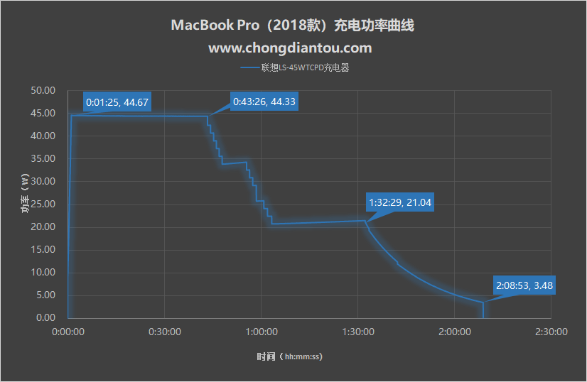 4、最高45W输出,两小时左右可充满MacBook Pro 13寸 2018款。