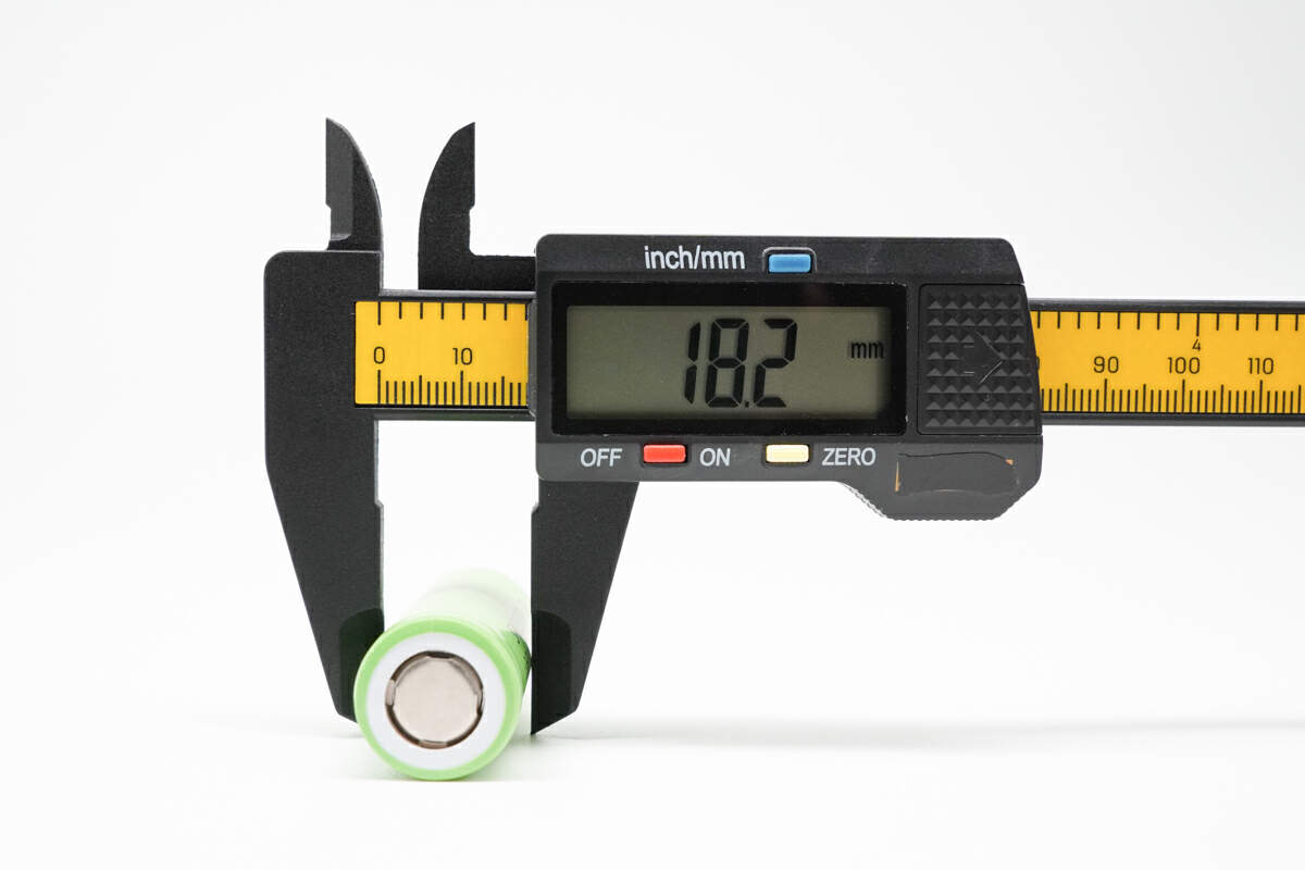 使用塑胶卡尺测得,赛富德SAFD18500DB电芯圆柱直径约为18.2mm。