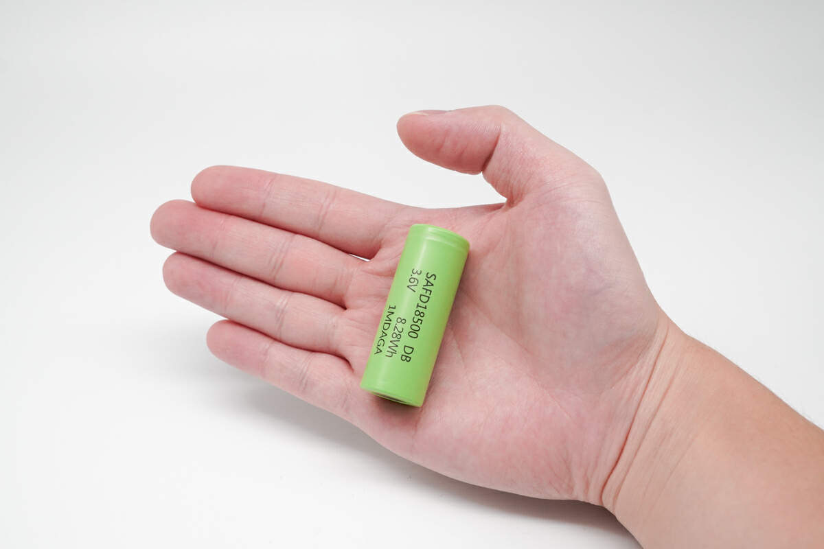 赛富德SAFD18500DB电芯在成年男子手中,体型较为小巧。