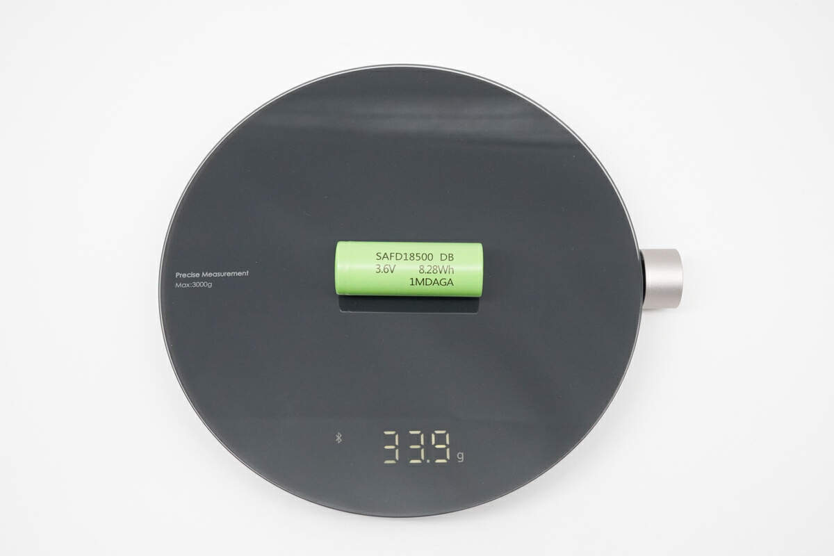 赛富德SAFD18500DB电芯重量约为33.9g。