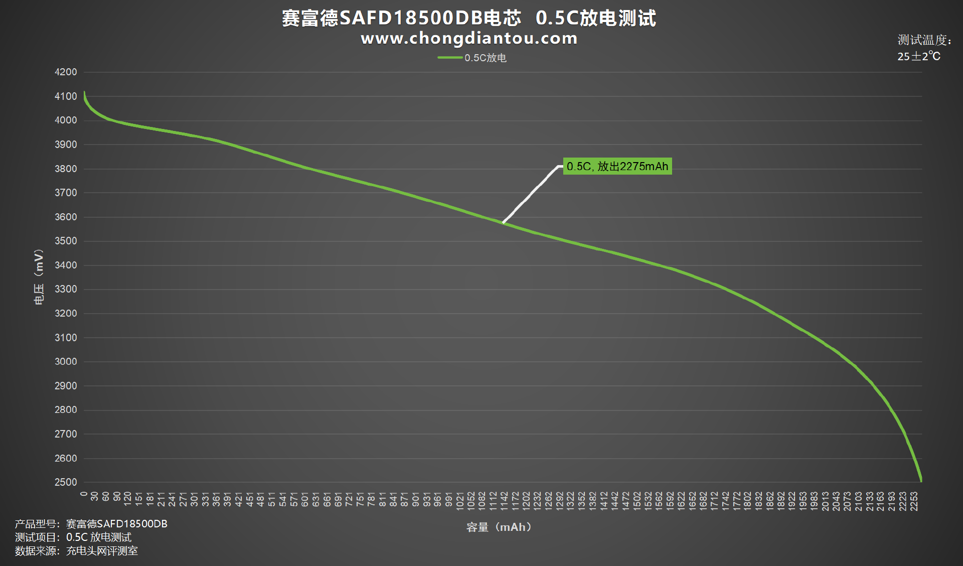 充放电截止电压分别是 4.2V/2.75V;