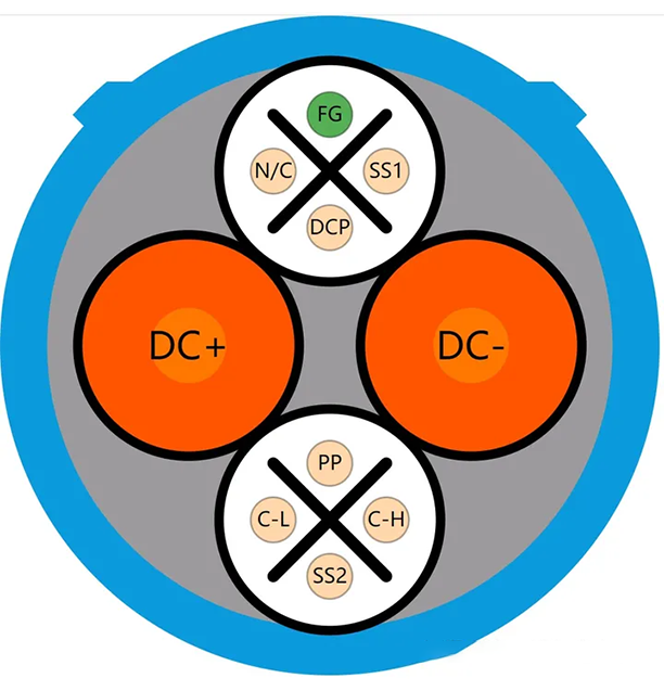 结合了欧洲使用的Mennekes交流充电和美国使用的SAE J1772直流充电标准。它采用与Mennekes Type 2交流插头相同的插头,并在其下方增加两个直流电极。这样,CCS兼容了交流充电和直流充电,可以满足不同地区和不同车型的充电需求。