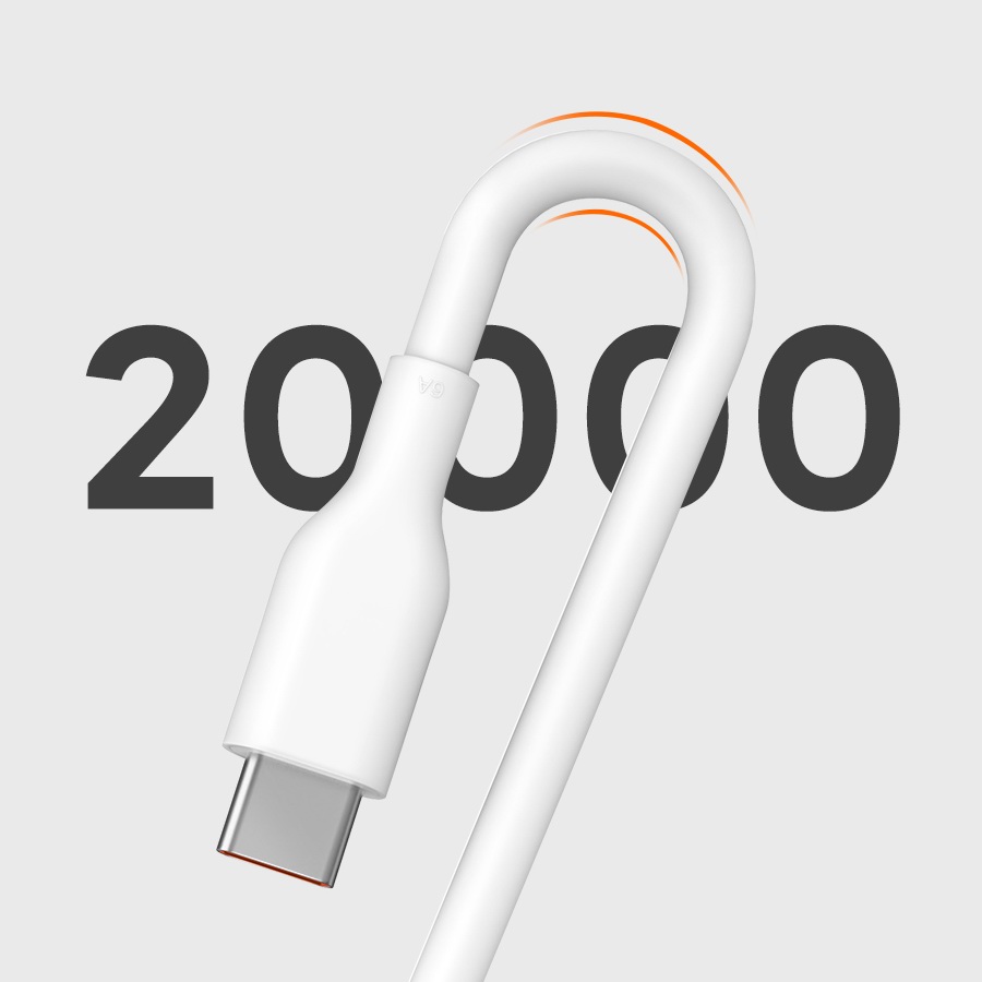除了更长的使用范围外,小米 6A USB-C to USB-C 硅胶快充数据线与手机配送的线缆最大区别是材质的不同,硅胶线加入柔软亲肤的硅胶材质制作,拥有更好的回弹性,收纳时不易缠绕。另外,线缆端子头采用一体注塑成型,网尾位置加长包裹,可承受 20000 次弯折,保证线缆持久耐用。