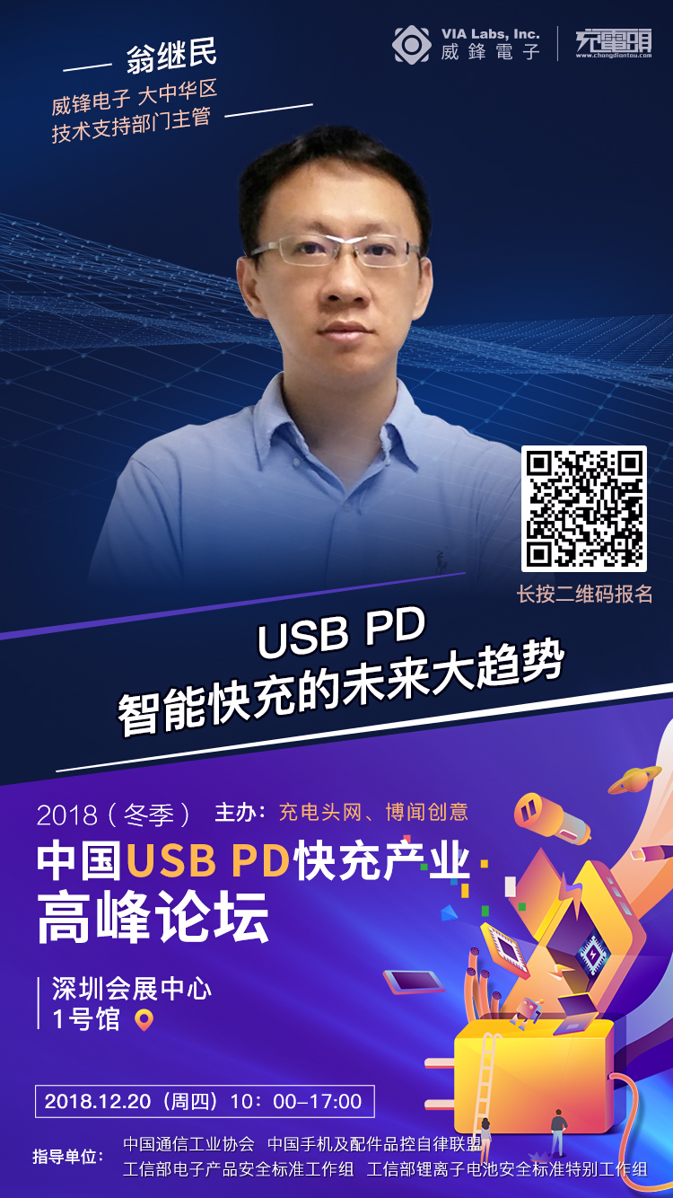【2018(冬季)中国USB PD快充产业高峰论坛】第四位演讲嘉宾揭晓!