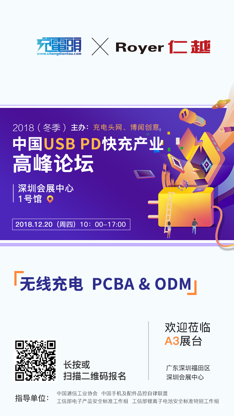 仁越参加2018(冬季)中国USB PD快充产业高峰论坛,展位号A3