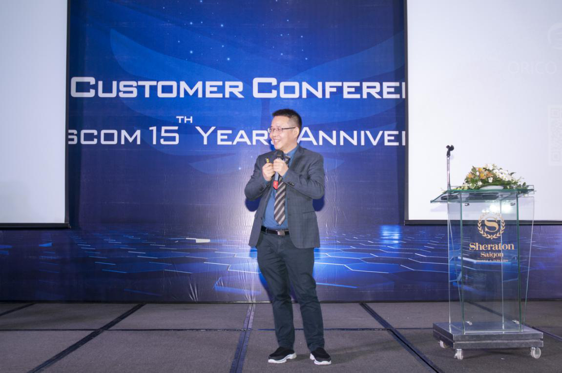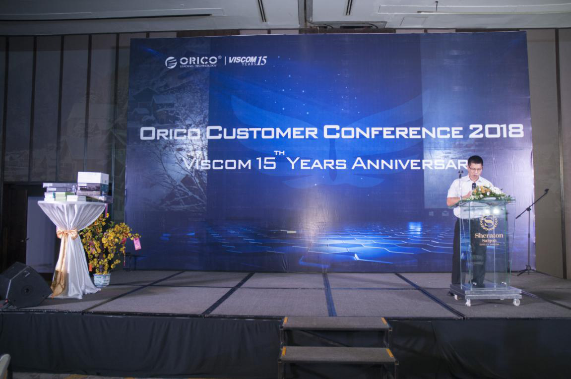 19:00,伴随主持人上台致开幕词,一段热闹的开场舞后,会议正式开始。越南总代理Mr. Cong上台后第一时间对全国各大经销商的到来与支持,表示热烈的欢迎和衷心的感谢。2018年是开拓新疆域的一年,经销商作为产品销售与服务的延伸者与执行者,在全国市场的第一线奋斗、拼搏,是Viscom扩大市场份额的基础。同时,也非常感谢ORICO产品的品质和周到服务,自Viscom与ORICO合作以来,Viscom利润也得到了大幅度提高。未来,Viscom会继续致力于做广大经销商最忠实的合作伙伴与坚强后盾,与大家携手并进,合力共赢,将ORICO优质的数码产品带向全国。