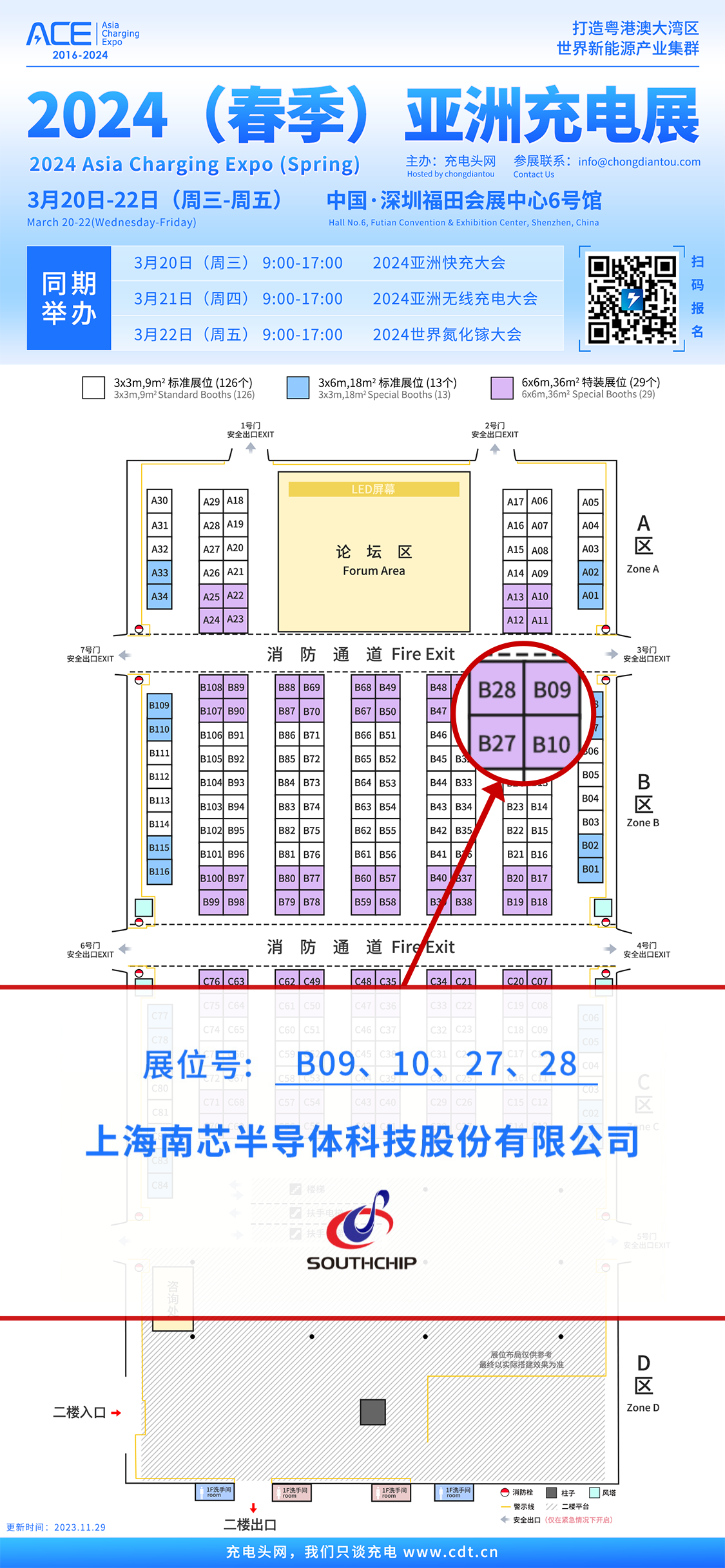上海南芯半导体科技股份有限公司参加充电头网主办的2024(春季)亚洲充电展,展位号位于B区B09、B10、B27、B28,3月20-22日欢迎莅临展会现场交流、洽谈。