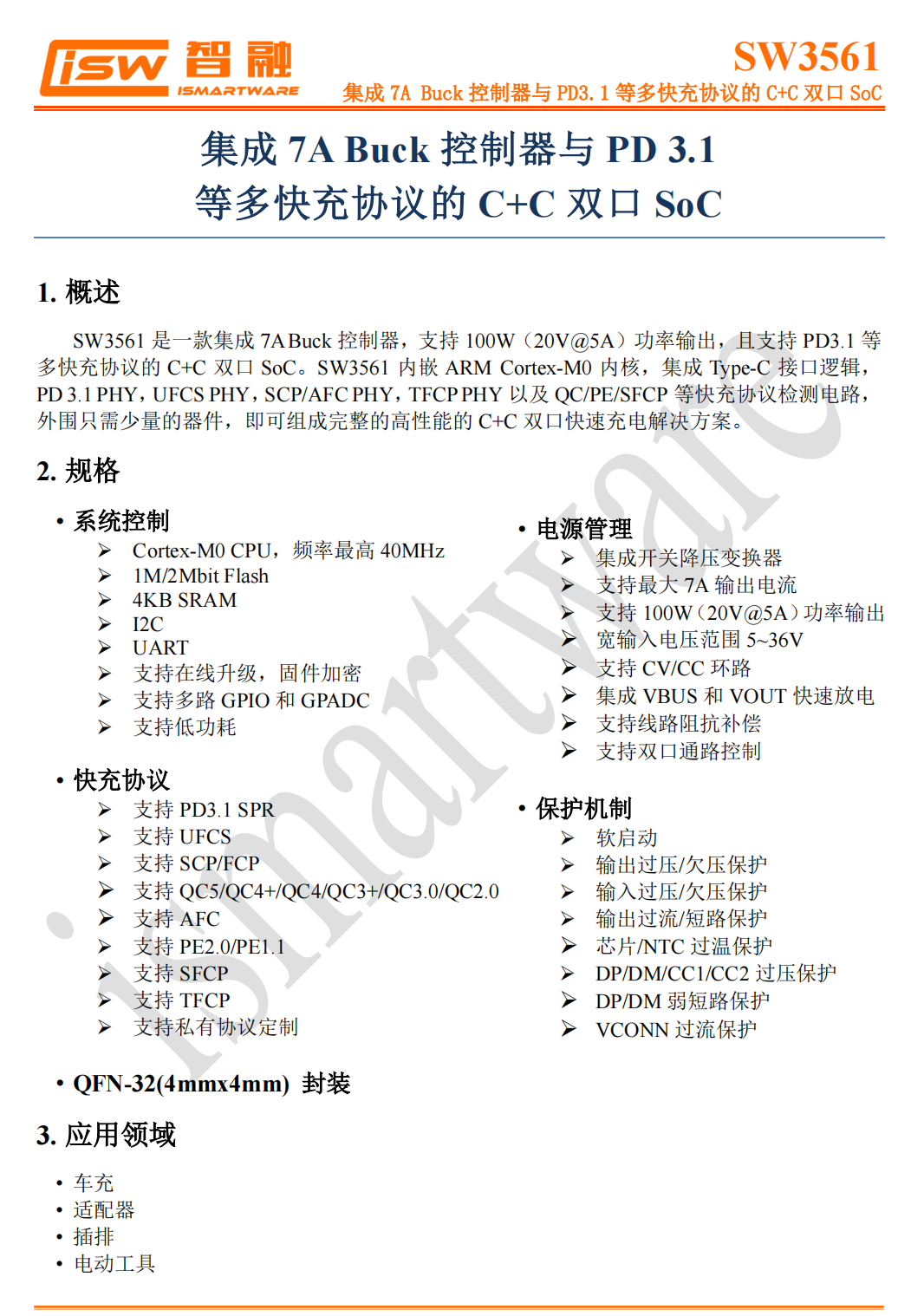 1、内置MCU无需外挂,智融科技推出全新PD3.1快充SOC芯片SW3561