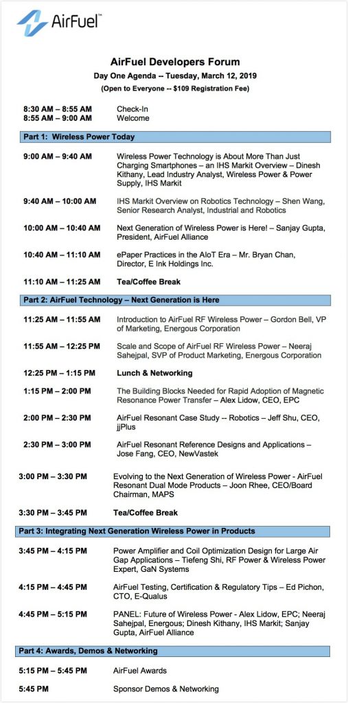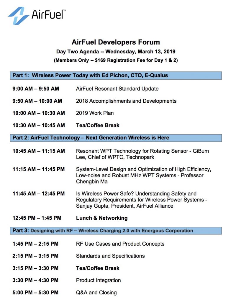 AirFuel无线充电大会日程(最终日程以现场为准)