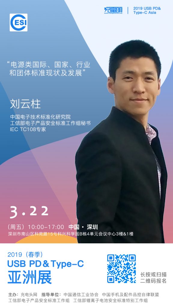 中国电子技术标准化研究院,工信部电子产品安全标准工作组秘书/IEC TC108专家 刘云柱,本峰会将为大家带来《车充、充电线及国内外电子产品安全标准化动态》主题演讲。刘云柱先生是国际电工委员会IEC/TC 108专家,主要从事国内外音视频、信息技术、通信技术设备等电子产品安全领域的IEC国际标准、GB国家标准、行业标准、团体标准制修订、标准化研究等工作。