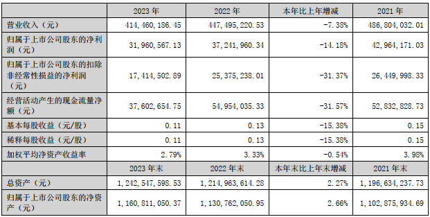 2024年3月30日,雷柏科技公布了《2023年年度报告》。报告显示,公司2023年实现营业总收入4.14亿元,同比下降7.38%;归属于上市公司股东的净利润3196.06万元,同比下降14.18%。