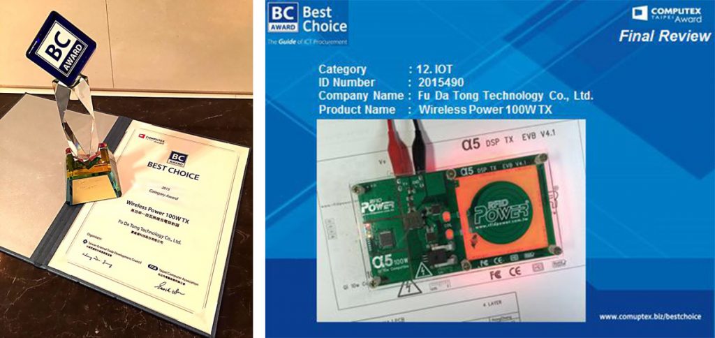 富达通大功率无线充电系统是相当独特,其应用面相当广泛从抗恶劣环境的工业、军用领域到需要完全消毒的医疗设备都有发挥的空间,该系列产品在COMPUTEX 2015 BC Award创新科技产品奖项肯定。