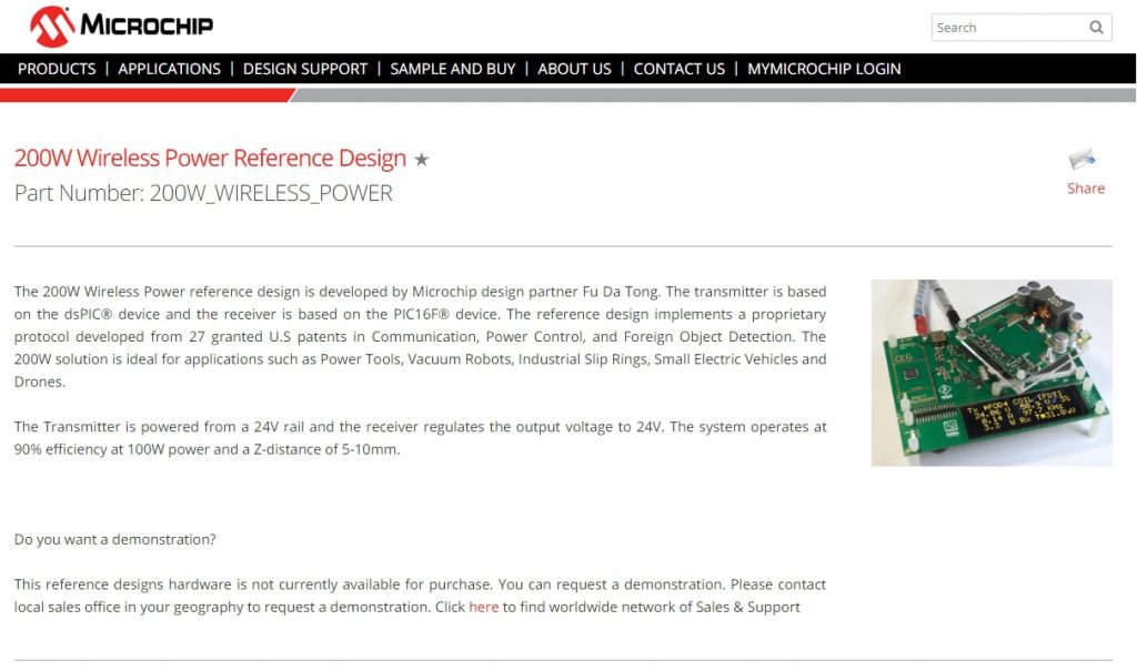 目前全球唯一供应无线充电IC可达到360W方案的厂商富达通科技公司,其性能也被Microchip(美国微蕊)所认可,在其官方网页上放置富达通200W方案参考设计之讯息。