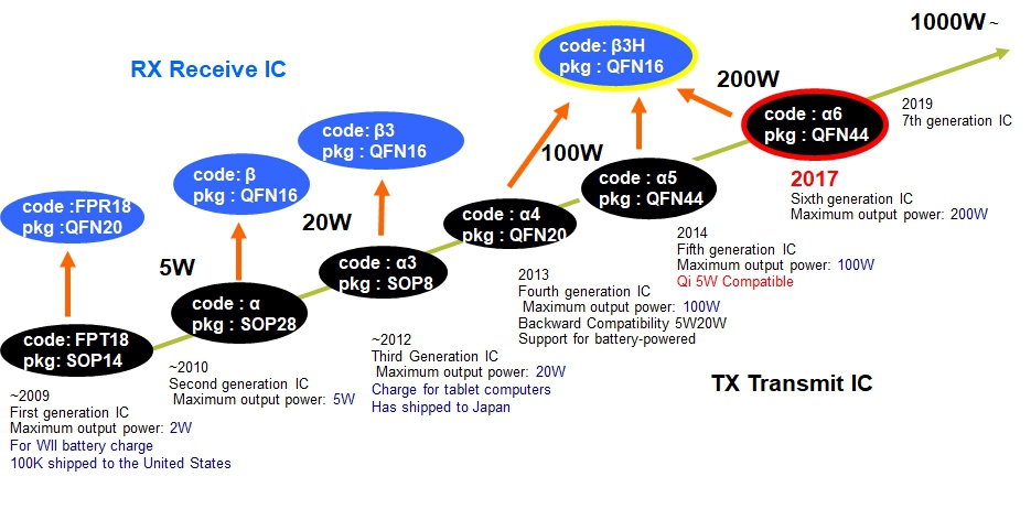 经过多年研发目前发射端芯片a系列已经来到第六代系统a6,其设计输出功率最大可以达到360W以上。