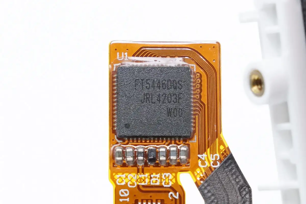 触摸芯片来自敦泰电子,型号FTS5446DQS,具备16条驱动线和28条采样线。