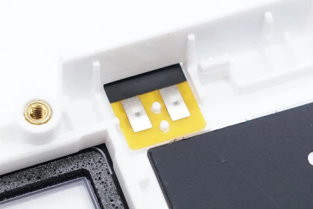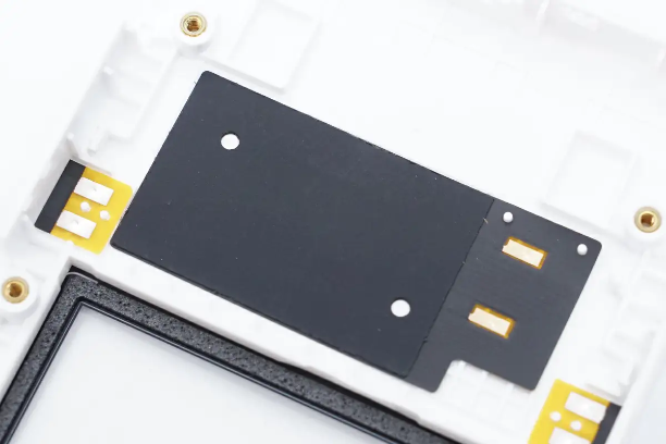 NFC线圈特写,通过触点连接到PCBA模块。
