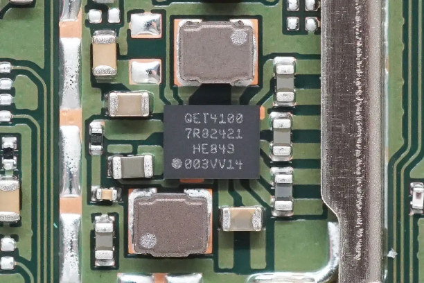 搭配使用的电源芯片来自高通,型号QET4100。