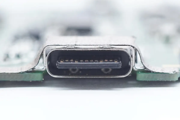 USB-C母座采用过孔焊接固定。