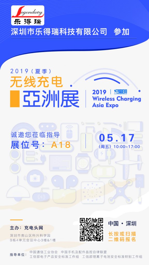 乐得瑞将在5月17日出席参加:2019(夏季)无线充电亚洲展,展台设在A18,欢迎大家前来咨询!