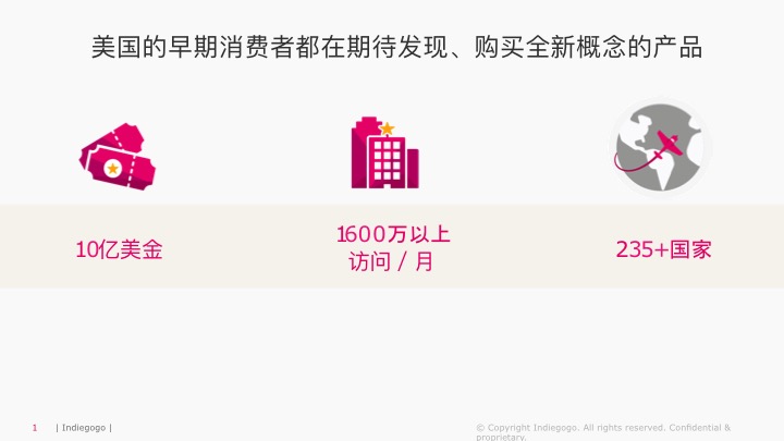 Indiegogo是全球最大的产品众筹平台,覆盖全球235个国家,十年间一亿的平台参与者为全球创意产品筹款15亿美元,2018年筹款额最高项目60天筹集一千四百万美金。出海路漫漫,在这个货比三家的时代从零打造一个国际品牌极具挑战。秉承Indiegogo「为创新圆梦、不分国界」的宗旨,我们团队致力于协助中国公司通过众筹渠道推出创新产品,为打造国际品牌迈出成功的第一步。过去三年中,中国产品在Indiegogo众筹平台上筹集了近$1.5亿美元的资金。Indiegogo团队专业的营销策略指导与推广支持,让跨境众筹不再是挑战。