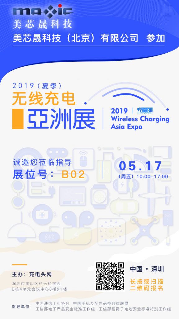 美芯晟将在5月17日出席参加:2019(夏季)无线充电亚洲展,展台设在B02,欢迎大家前来咨询!