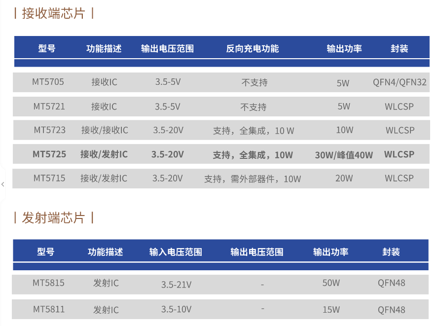 公司掌握无线充电领域和LED领域多项技术,拥有近百项发明专利。经过几年的努力,美芯晟已经成功开发和量产了用于无线快充的接收和发射系列芯片,可以用于手机,TWS,手表等充电应用。尤其是无线充电接收系列芯片MT5715/5725,芯片充电功率可达30W,效率达到92%,从而实现真正意义上的无线快充,彻底改变目前无线充电速度慢、效率低的现状。