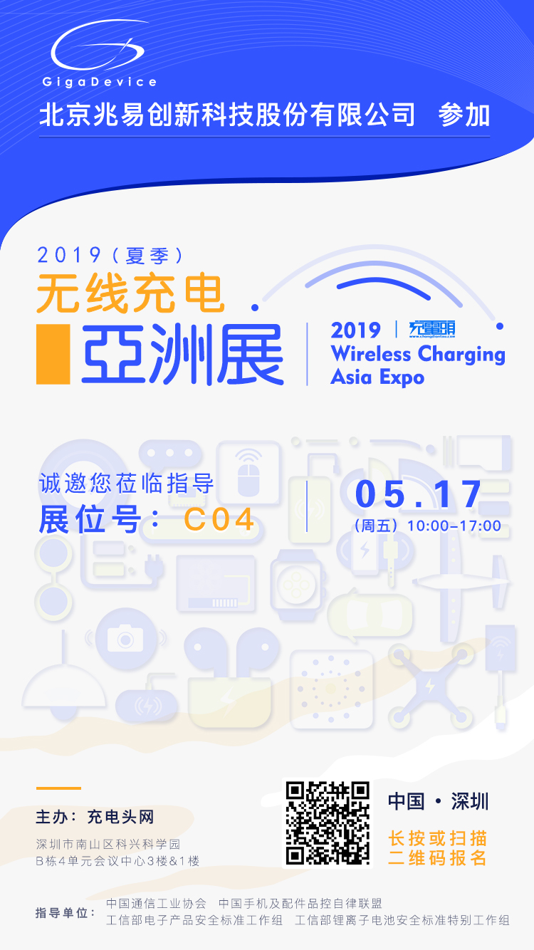 兆易创新GD32 MCU将在5月17日出席参加:2019(夏季)无线充电亚洲展,展台设在C04,欢迎大家前来咨询!
