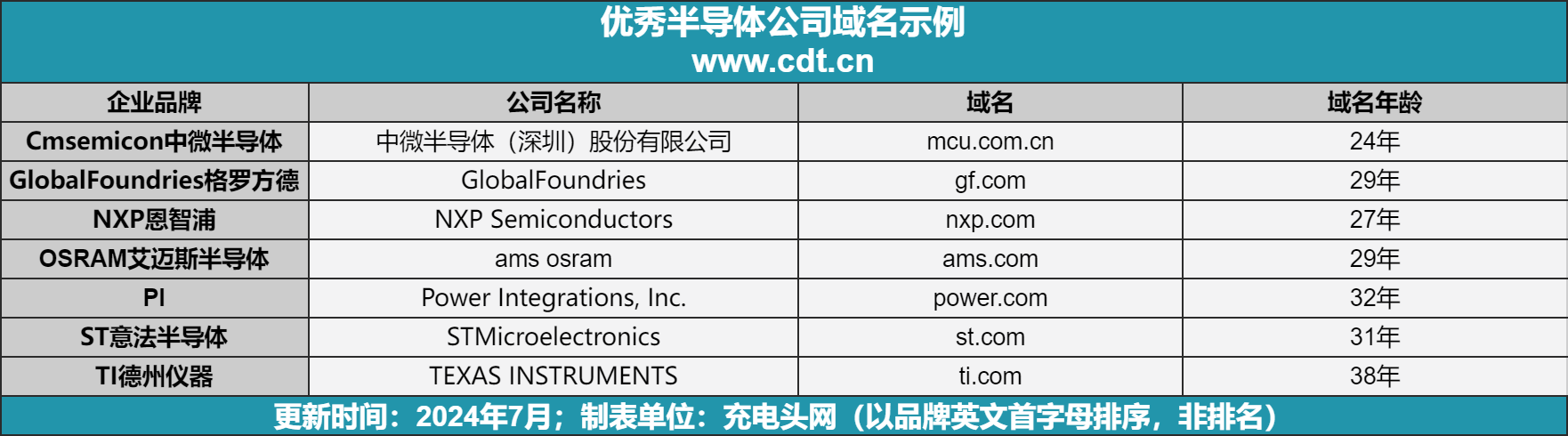 充电头网统计了多家知名半导体企业域名,看看这些企业在域名上的布局,可供大家参考。