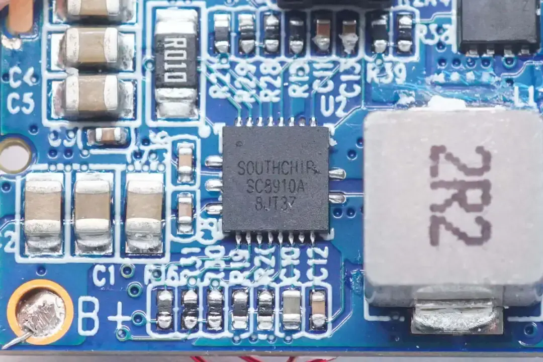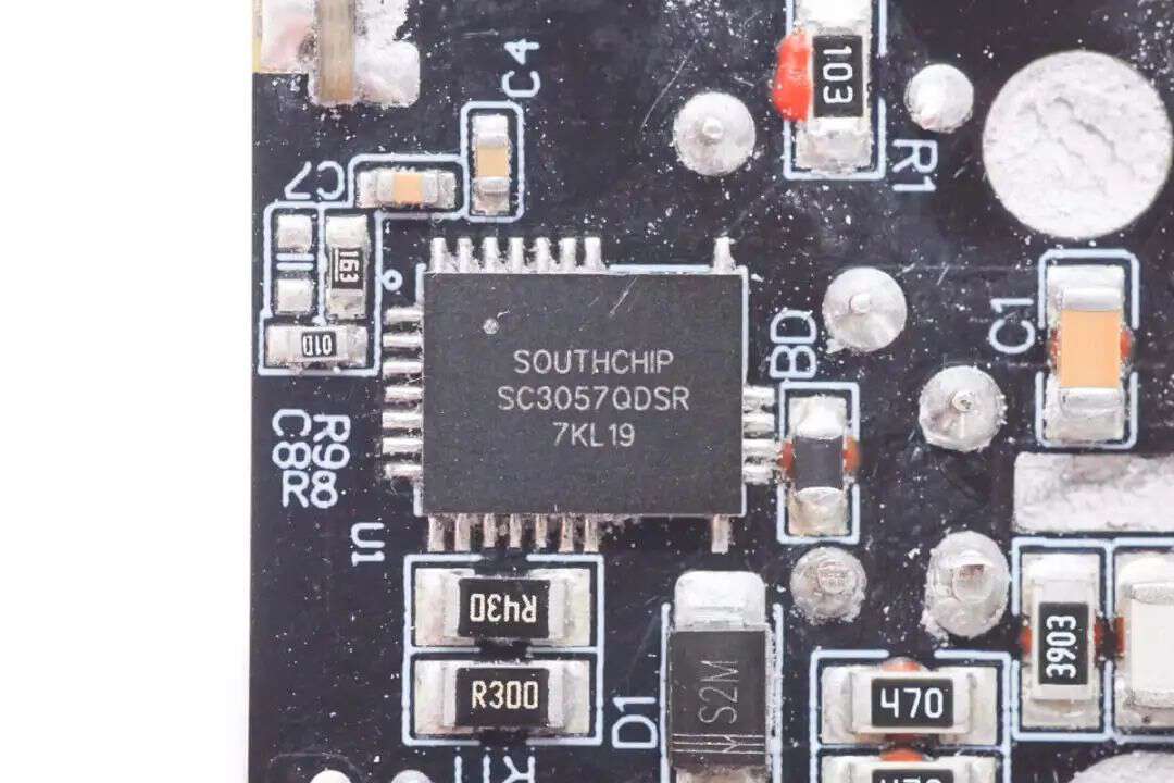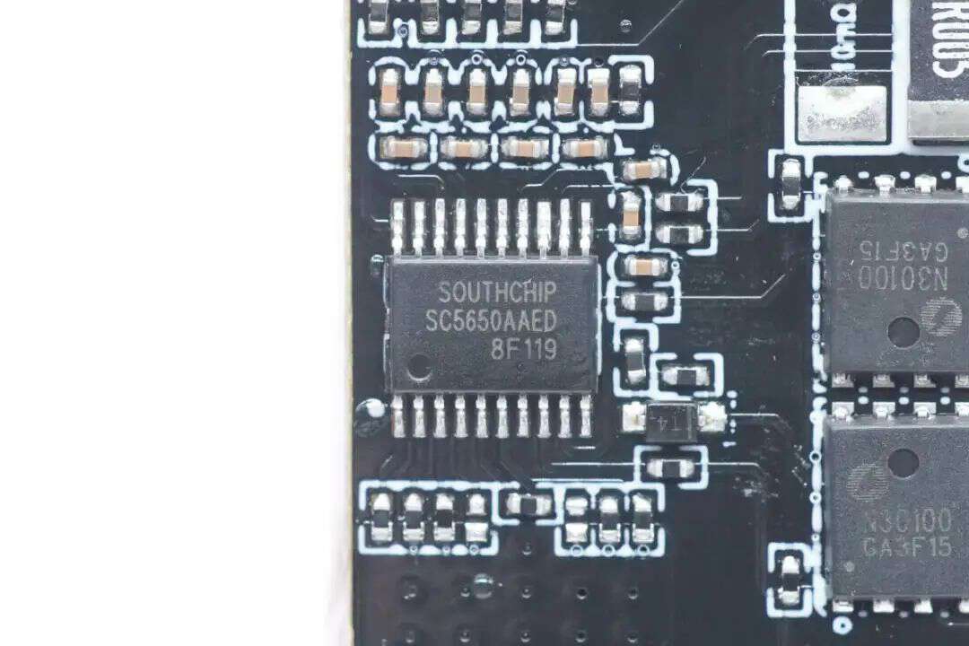 USB-C1和USB-C2快充接口的协议芯片来自南芯科技,型号SC9712A,是一款高度集成的双端口快充SoC芯片,支持多种快充协议。SC9712A整合了36V高效同步降压控制器,具有最大7A输出电流,并具有可配置80k~600kHz的开关频率,还配备了一组Type C接口和2个DPDM快充协议控制接口,可以最大程度地减少了外部元件,实现了双USB端口(1C1A,Type C+ USB A)的快速充电功能,为便携设备,如电脑、平板电脑和手机等提供高达140W的充电功率。