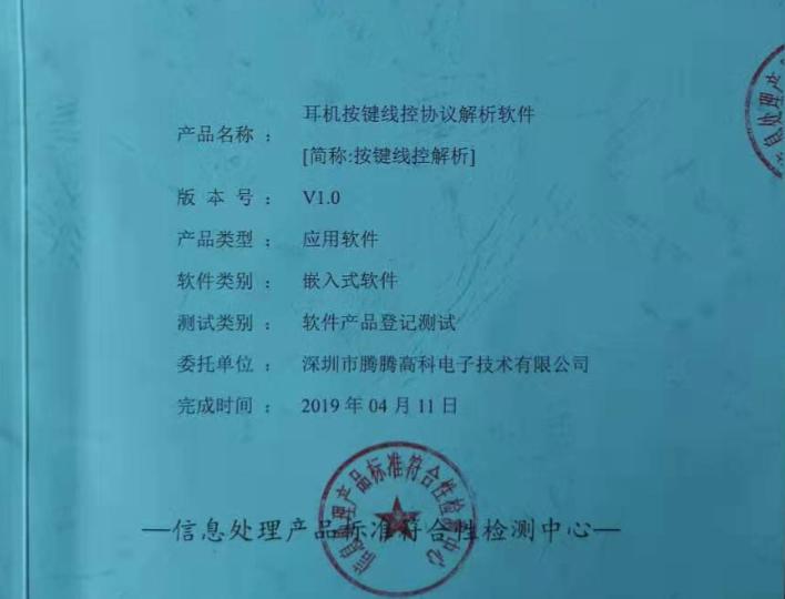 苹果线控识别功能来自于腾腾高科特别定制的MCU和自主开发的软件,目前此软件已得到国家信息管理中心认证并注册登记。