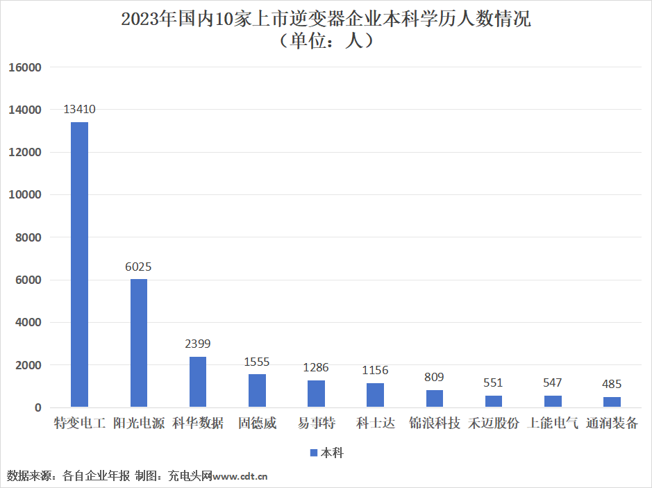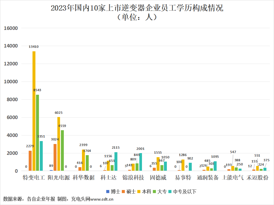 8543名大专学历人才和 3351名中专及以下学历人才则在生产和基础岗位上发挥着重要作用。特变电工以其庞大的人才队伍和丰富的学历层次,在逆变器行业中占据着重要地位。