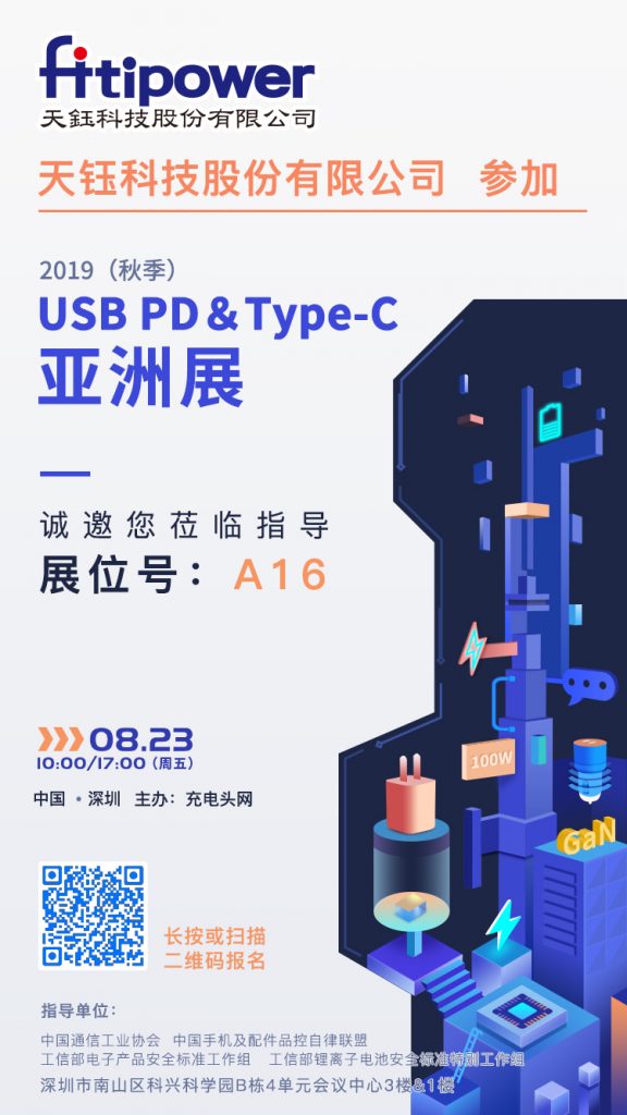 天钰科技将在8月23日参加2019(秋季) USB PD&Type-C亚洲展,展位设在A16,需要了解USB PD快充协议芯片的观众可在展会当天前往A16展台进一步交流。