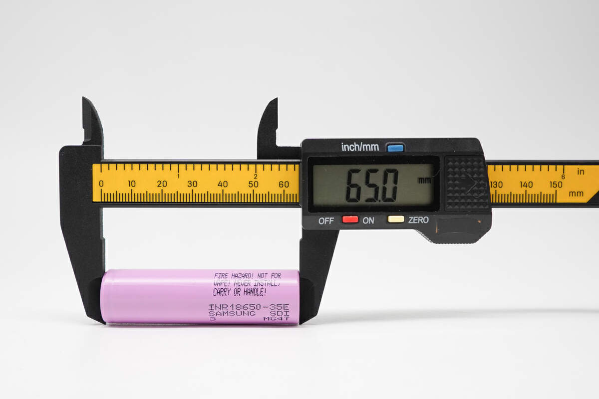 三星INR18650-35E电芯圆柱高度约为 65mm。