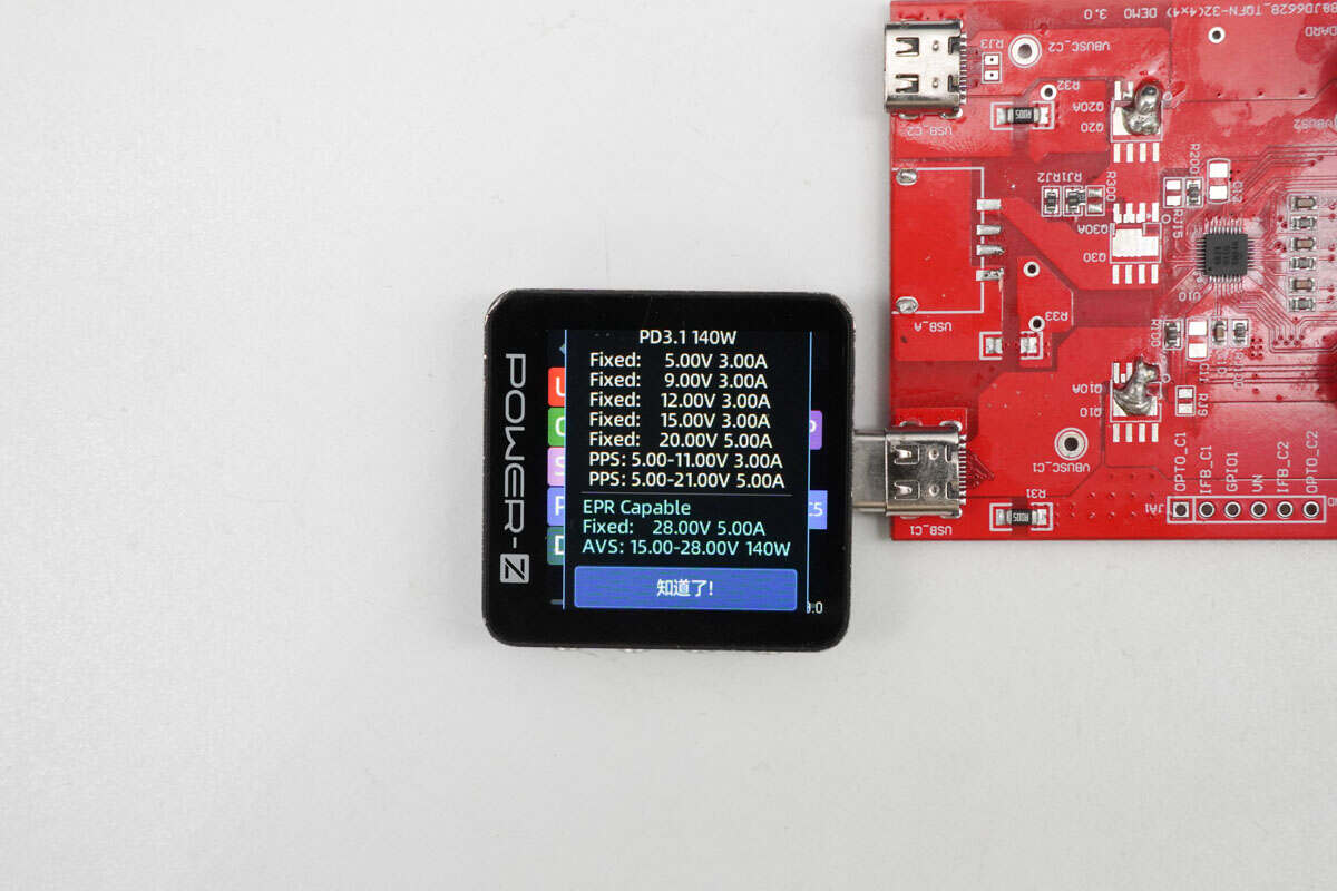 PDO报文方面,端口支持 5V/3A、9V/3A、12V/3A、15V/3A 、20V/5A和28V/5A 六组固定电压及三组5-11V/3A、5-21V/5A、15-28V5A的PPS档位。