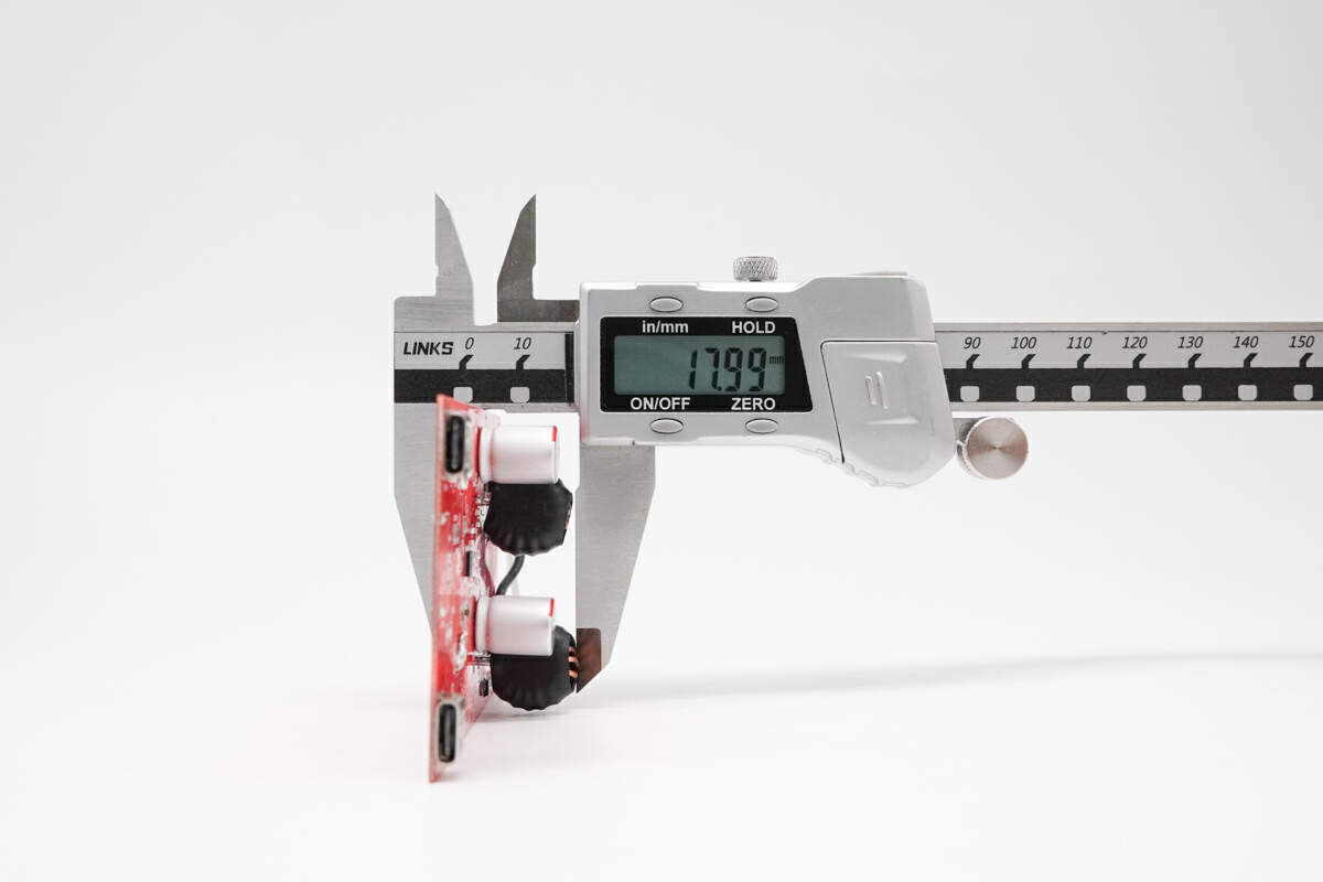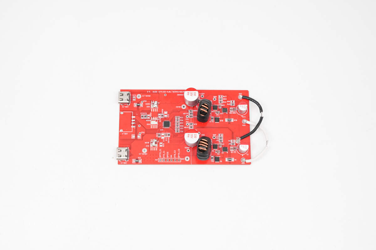 天德钰 JD6638+JD6628 方案正面采用JD6638+JD6628双芯片控制,JD6628来控制JD6638的输出,可以省VBUS MOS,从而进一步压缩该方案的体积及成本,Demo状态下元器件摆放预留较大空间。