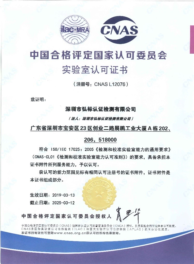 此外,弘标公司还获得了CNAS授权,是中国合格评定国家认可委员会认可实验室。