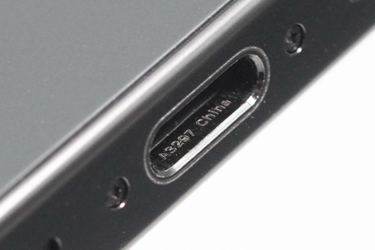 USB Type-C 接口的金属框上镭刻产品型号及产地:A3297 China。
