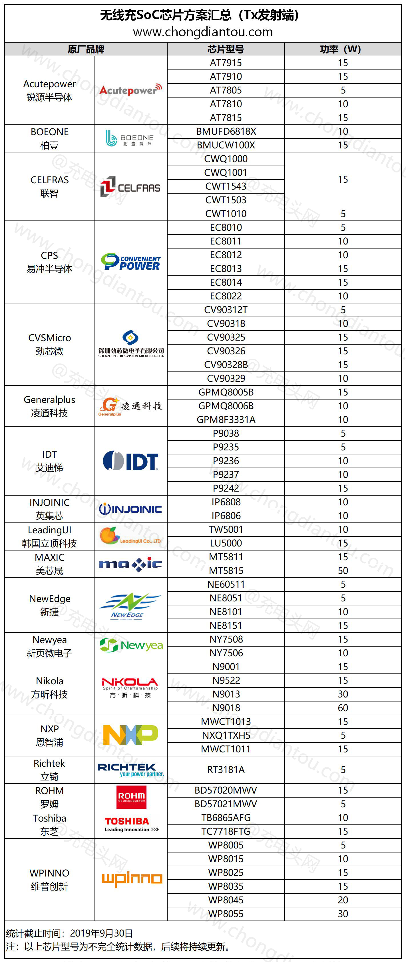 四、无线充SoC芯片方案及厂家的具体信息如下: