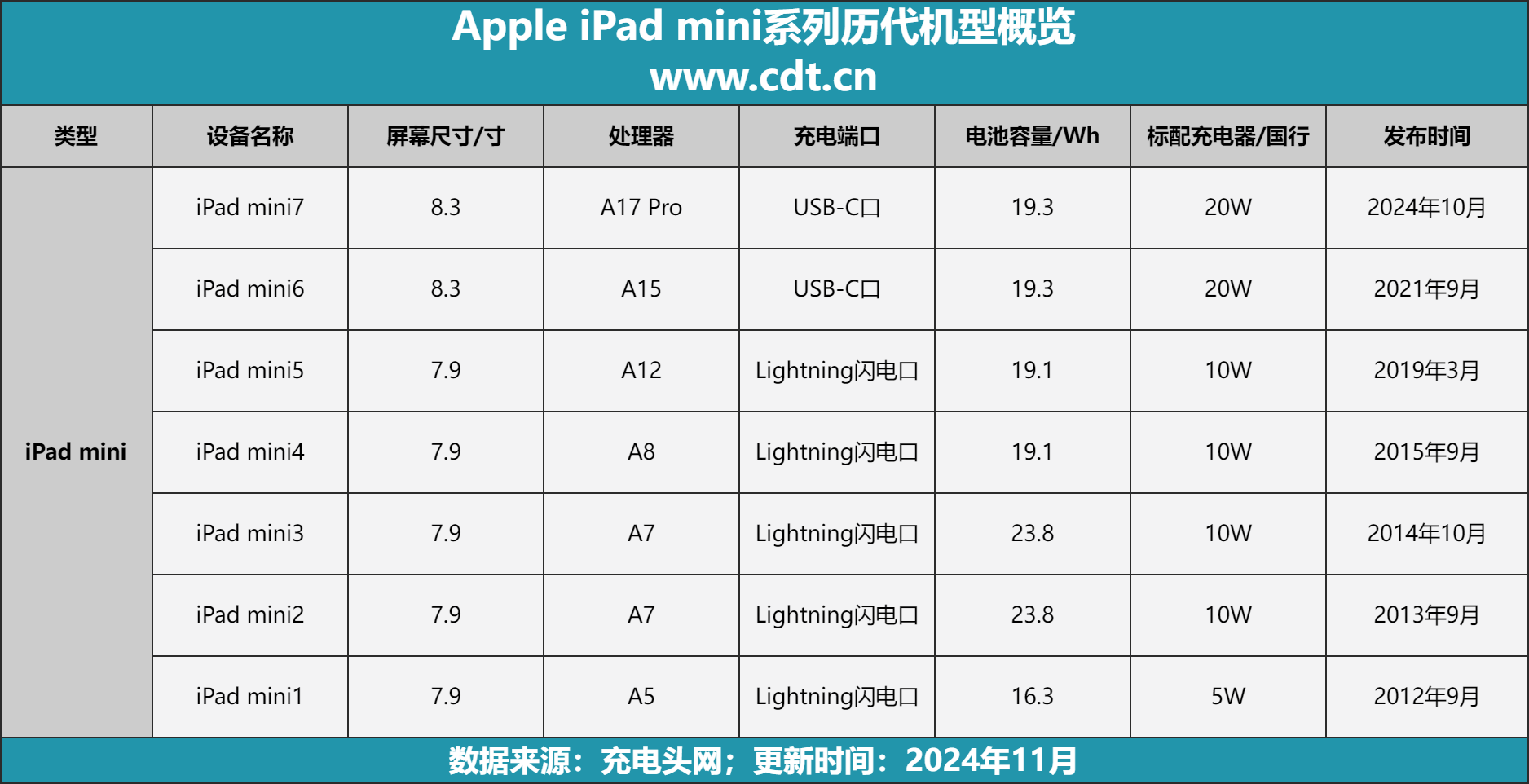 自2012年9月,苹果公司(Apple lnc.)发布了第一款 iPad mini系列以来,已经发展至第七代产品。