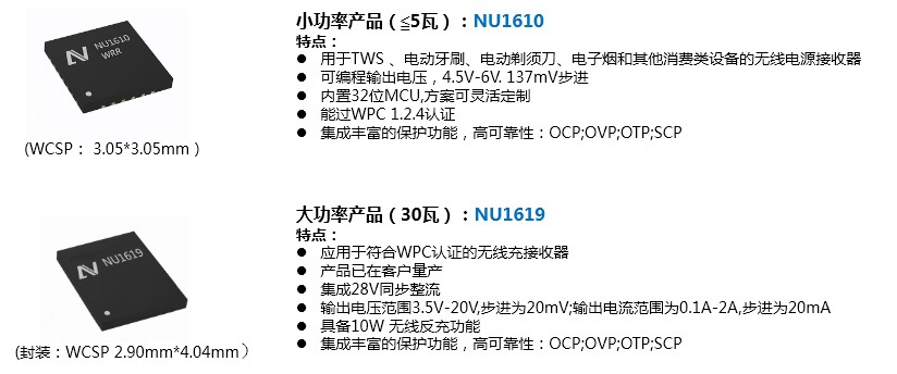 - 拥有3W-30W全功率无线充电接收端解决方案以及丰富的无线充接收端IP