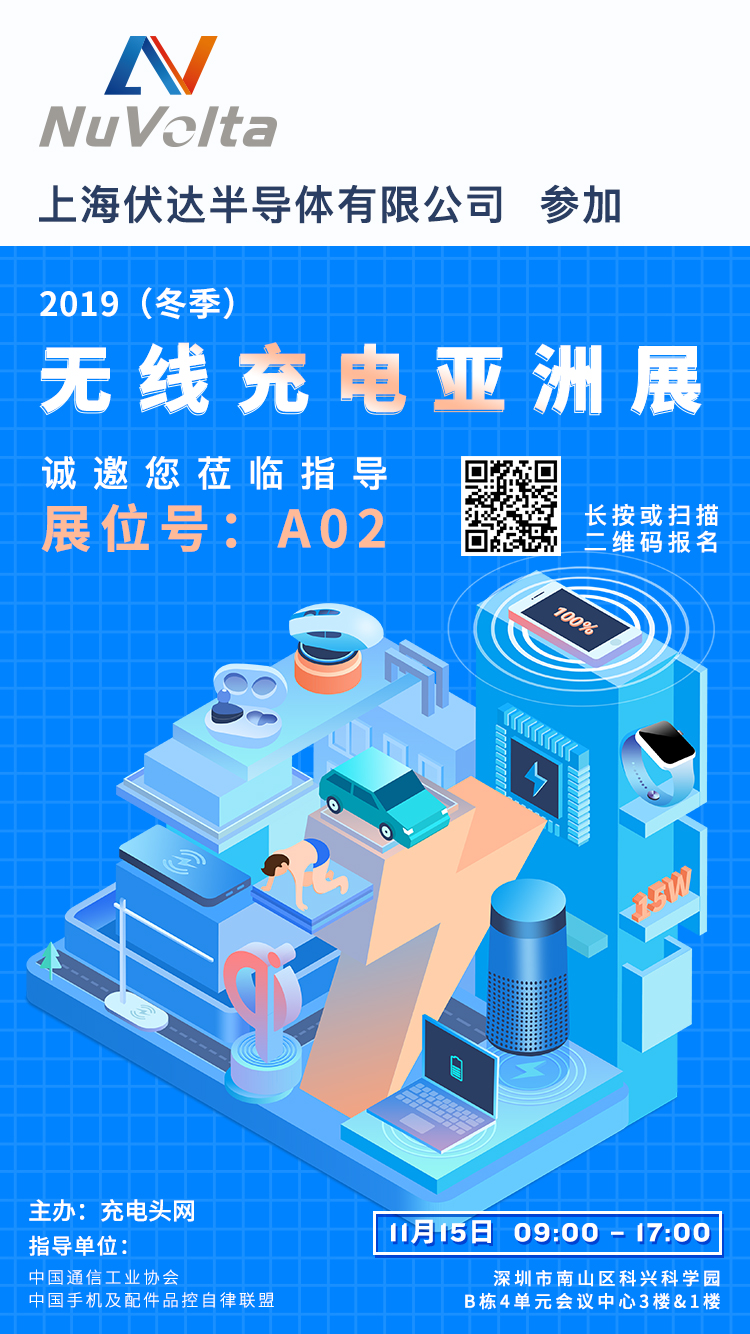 温馨提示:伏达半导体 将参加11月15日中国深圳召开的2019(冬季)无线充电亚洲展,展位设在A02,需要了解无线充电TX/RX解决方案的观众,可在展会当天前往展位详细交流。