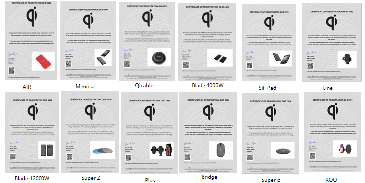 公司产品已通过Qi、CE、FCC、RoHS、UL等相关质量控制认证。