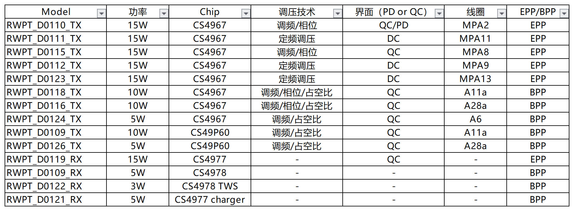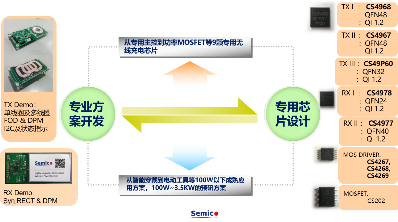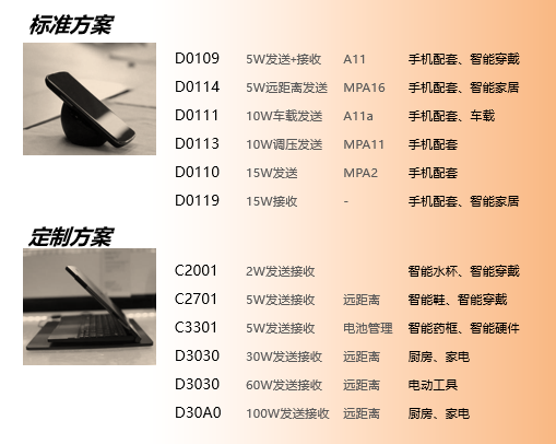 无线充产品线是华润矽科五大重点产品线之一,华润矽科早在2012年就开始了对无线充的探索,至今累计获得无线电力传输领域发明专利25项,形成了完整的中小功率领域产品线(已量产),覆盖5W ,10W,15W解决方案,应用领域覆盖手机及手机配套设备,智能穿戴,智能家居,中小功率消费电子等。作为QI成员和支持者,华润矽科积极参与WPC专题会议、制定标准、技术交流、沟通和推广应用。基于华润矽科多年的模拟电路设计经验,在提供无线充主控芯片和方案的同时,还配套专用DC-DC,MOS Driver和MOS电路,以供客户灵活选择。