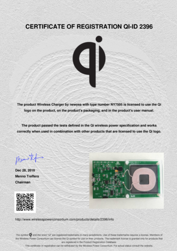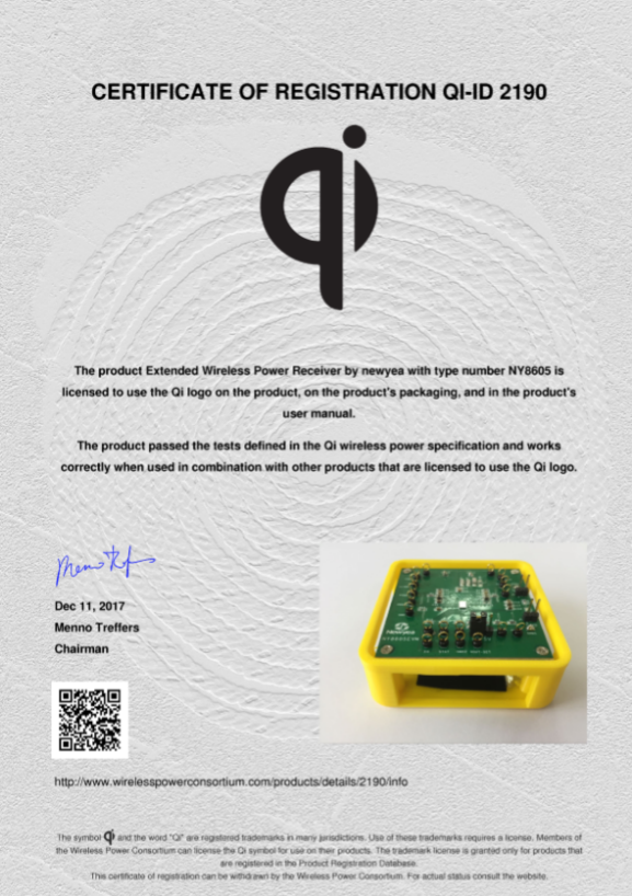 公司拥有多名来自国内外的博士、硕士、高级工程师组成的强大研发团队,为智能穿戴、智能手机、智能家居等领域提供无线供电技术,新页微电子在中小功率无线充电领域,一直保持着精进的态势,15W无线快充发射芯片(NY7515)及接收芯片(NY8605)已经成功拿到无线充电联盟(WPC)Qi EPP规格认证,成为全球少数能够提供全套EPP认证芯片的公司之一。