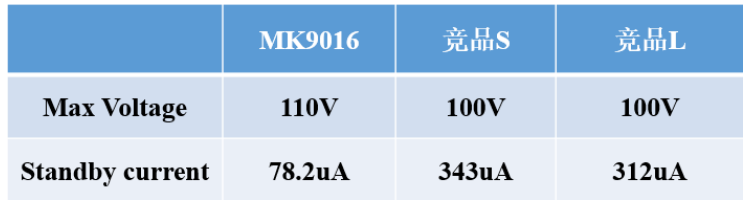 茂睿芯MK9016具有自主专利的待机模式,保证待机时Iin<100µA ,远远小于国内外的竞品: