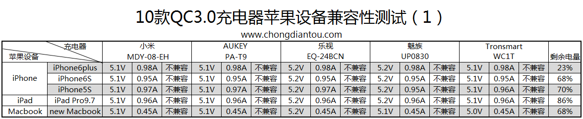 对手机的兼容性测试,由于无法收集如此众多的QC快充手机,只能测试移动电源。