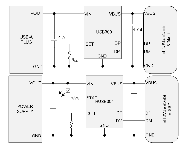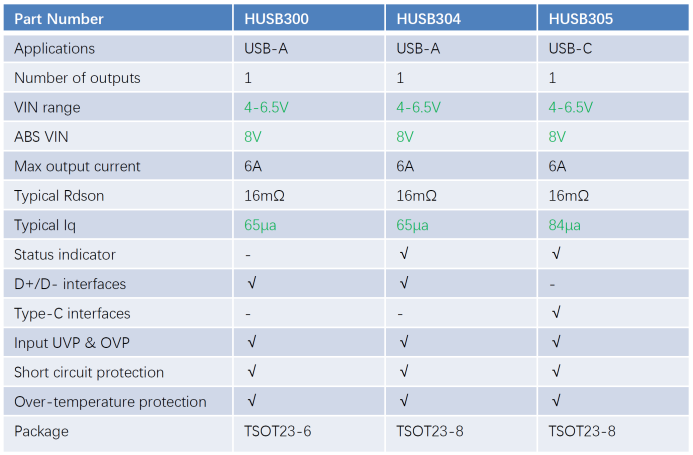- TSOT23-6封装(HUSB300)或TSOT23-8封装(HUSB304)